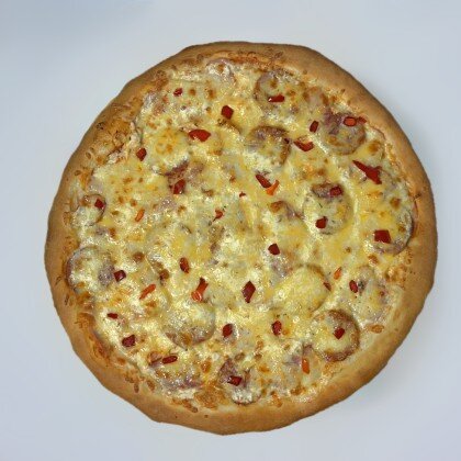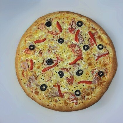 Салями, грибы, спелые томаты, сыр, зелень, соус Наполи и Маджорио